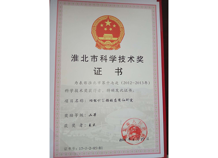 淮北市科學技術獎證書